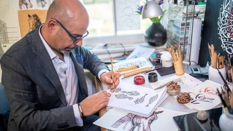 العراقي طه الهيتي، أحد أبرز الخطاطين العرب، تتلمذ على يد عباس البغدادي، وهو دارس للهندسة المعمارية، وقد انعكس فهمه الجمالي للخط، خاصة الثلث، من تلك الفضاءات التشكيلية التي يمكن تحقيقها من خلال بنية الحروف، وما تجسده من أشكال معمارية غاية في الرشاقة والإبداع، فالحروف بالنسبة له ذات طبيعة بنائية تستحق الكثير من الاهتمام من ناحية تصميمها على جسد اللوحة بشكل يليق بما تختزنه من توهج شكلي وروحي.