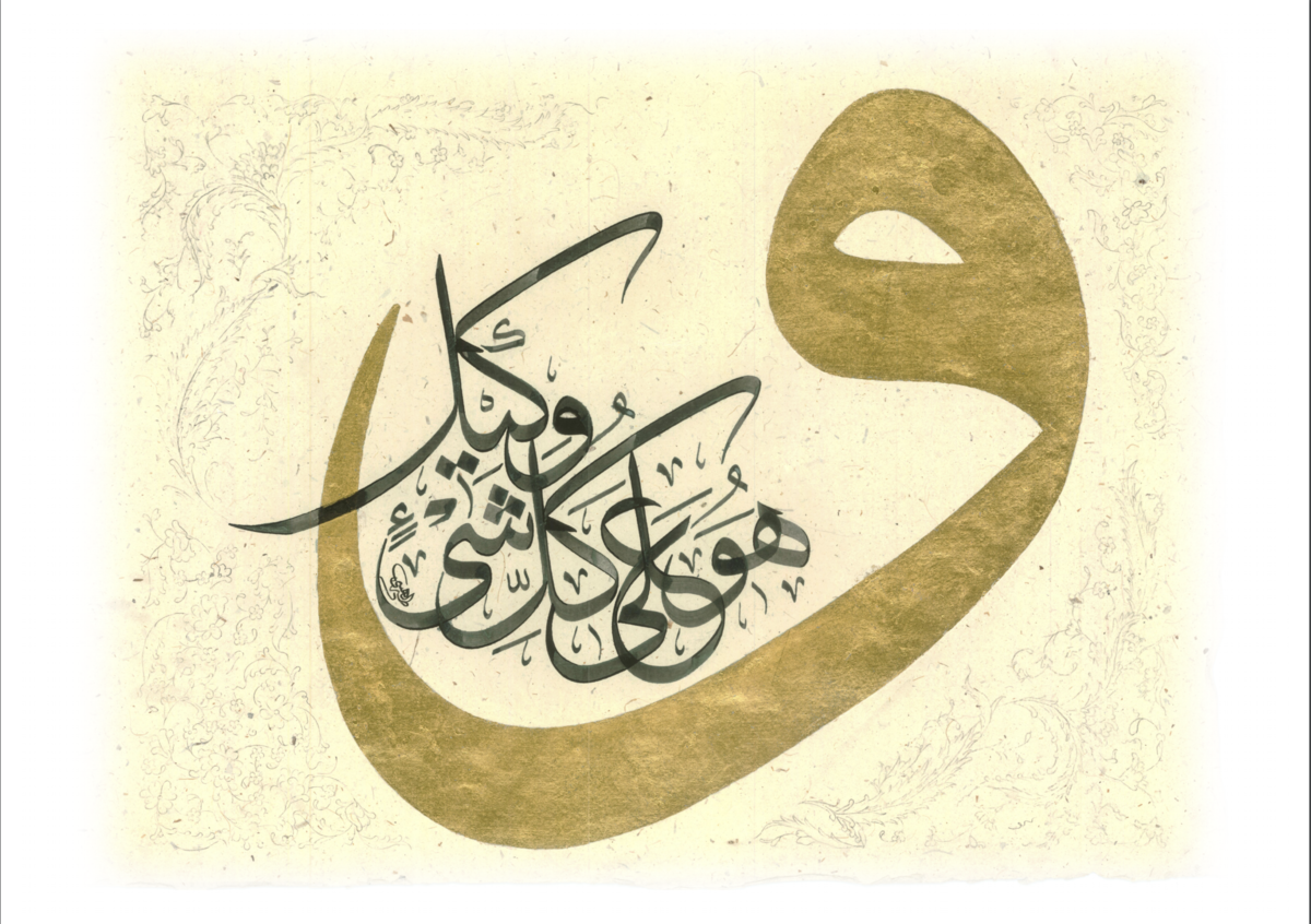 والواو في لوحة الخطاط الهيتي، تكاد تشير إلى مثل هذه المعاني، فكأنها بمثابة جسد اللوحة، أو مستهلها، وثمة إشارات عديدة تدل على عبادة الله، فحرف الواو، هو رمز لحكمة الله ووحدانيته، فهو إذاً، رمز روحي، وهو جوهر يربط بين جملتين، وفي كل مسجد بمدينة بورصة جنوبي إسطنبول التركية ثمة تدوين لحرف الواو، الذي يزينه الأتراك بفن التذهيب وزخرفة التوليب التركي الشهير.