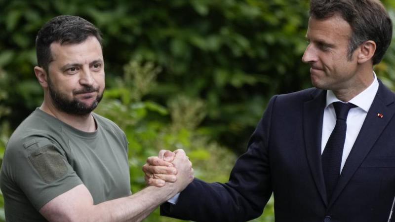بحث الرئيس الفرنسي إيمانويل ماكرون، مع نظيره الأوكراني فولوديمير زيلينسكي، خلال اتصال هاتفي، السبت، «الجهود الدبلوماسية التي يتعين بذلها لتنظيم قمة سلام».