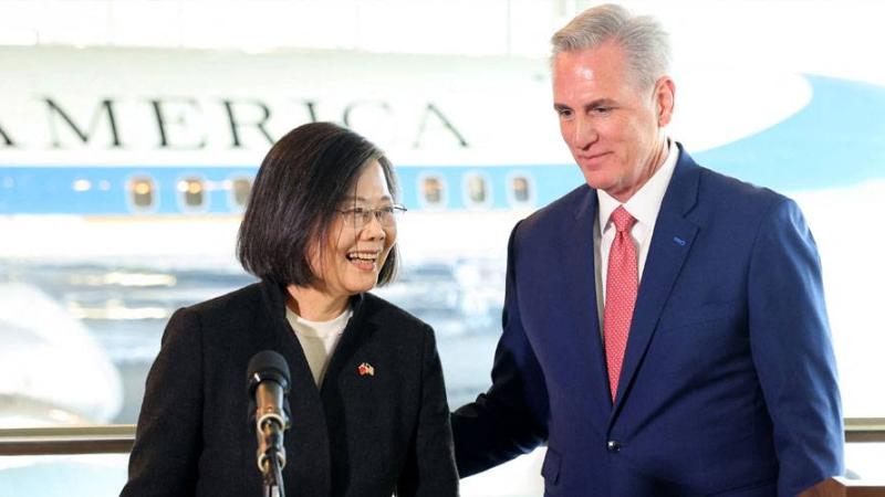 والتقت رئيسة تايوان البالغة 66 عاما رئيس مجلس النواب الأمريكي الجمهوري كيفن مكارثي في كاليفورنيا الأربعاء على الرغم من تلويح الصين بردود انتقامية.وأكد مكارثي أن العلاقات بين تايبيه وواشنطن «أقوى» مما كانت عليه «طوال حياته».