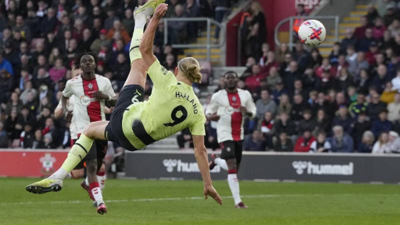 وانضم هالاند (22 عاماً) إلى سيتي من بروسيا دورتموند هذا الموسم، وأصبح الآن على بعد أربعة أهداف من الرقم القياسي لعدد الأهداف في موسم واحد بالدوري الإنجليزي لآلان شيرر وآندي كول (34 هدفاً).
