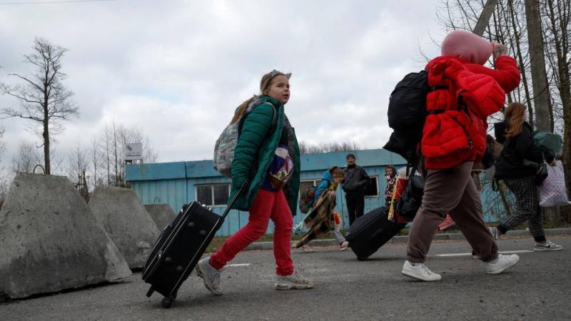 أطفال يعبرون الحدود البيلاروسية الأوكرانية في إقليم فولين (رويترز)