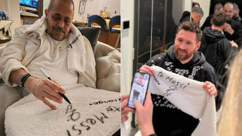 أرسل جورج وسوف منشفة تحمل اسمه، إلى ميسي لاعب نادي باريس سان جيرمان الفرنسي، وقائد منتخب الأرجنتين، الحاصل مؤخراً على بطولة كأس العالم.