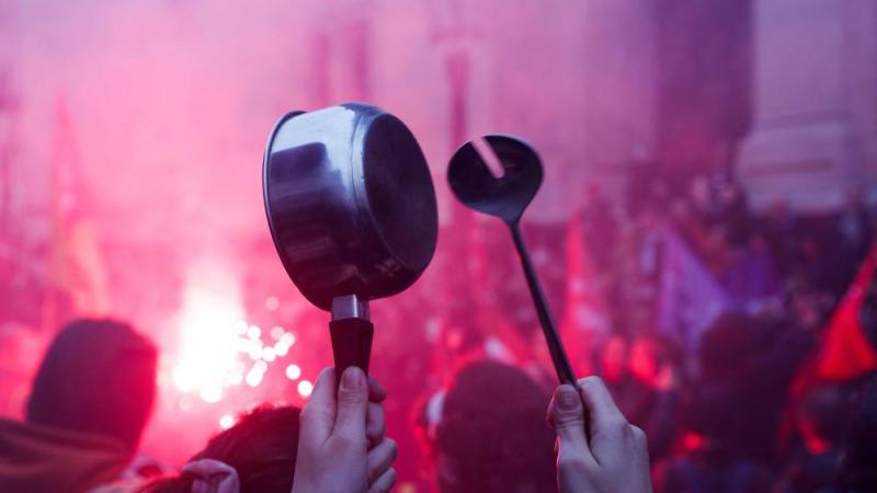 وحين بدأ ماكرون خطابه، قرع محتجون أواني الطبخ أمام مقرات رئاسة البلديات في شتى أنحاء البلاد، وأضرمت مجموعات صغيرة من المحتجين النار في صناديق قمامة في باريس.