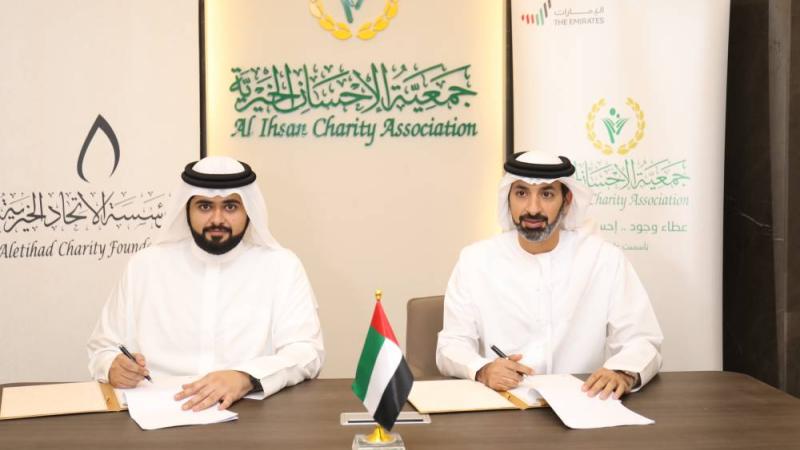 وقع الاتفاقية، الشيخ علي بن محمد بن علي النعيمي، نائب الرئيس التنفيذي لمؤسسة الاتحاد الخيرية، والشيخ راشد بن محمد بن علي النعيمي، المدير العام لجمعية الإحسان الخيرية، بحضور ناصر بن علي الجنيبي، المدير التنفيذي لمؤسسة الاتحاد الخيرية، وعدد من مسؤولي الجهتين، وذلك في مقر جميعة الإحسان الخيرية.