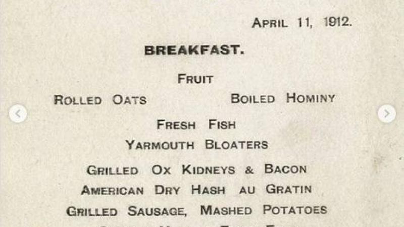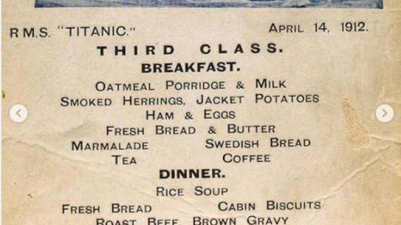 عرض حساب «Atlas Taste» على صفحته بالـ«إنستغرام» في الذكرى 111 على غرق سفينة تيتانيك الشهيرة، صورة لقوائم الطعام التي كانت تقدم لفئات مختلفة بالسفينة، قبل الليلة المشؤومة في 15 إبريل/نيسان 1912. كانت تيتانيك أفخم سفينة، وكان الطعام على متنها جزءاً كبيراً من جاذبية السفينة.