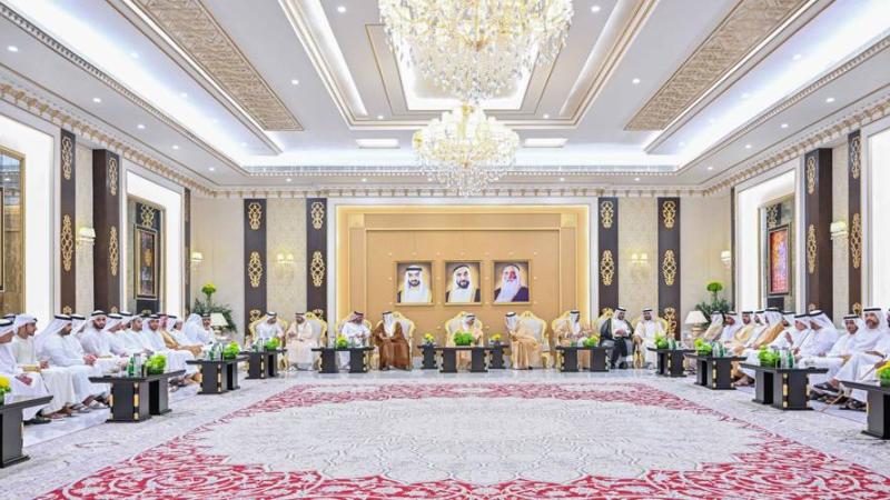 وتقبل سموّه التهاني والتبريكات، من الشيوخ وكبار المسؤولين ورؤساء ومديري الدوائر المحلية والاتحادية وأعيان البلاد والمواطنين وأبناء الجاليات العربية والإسلامية والأجنبية.