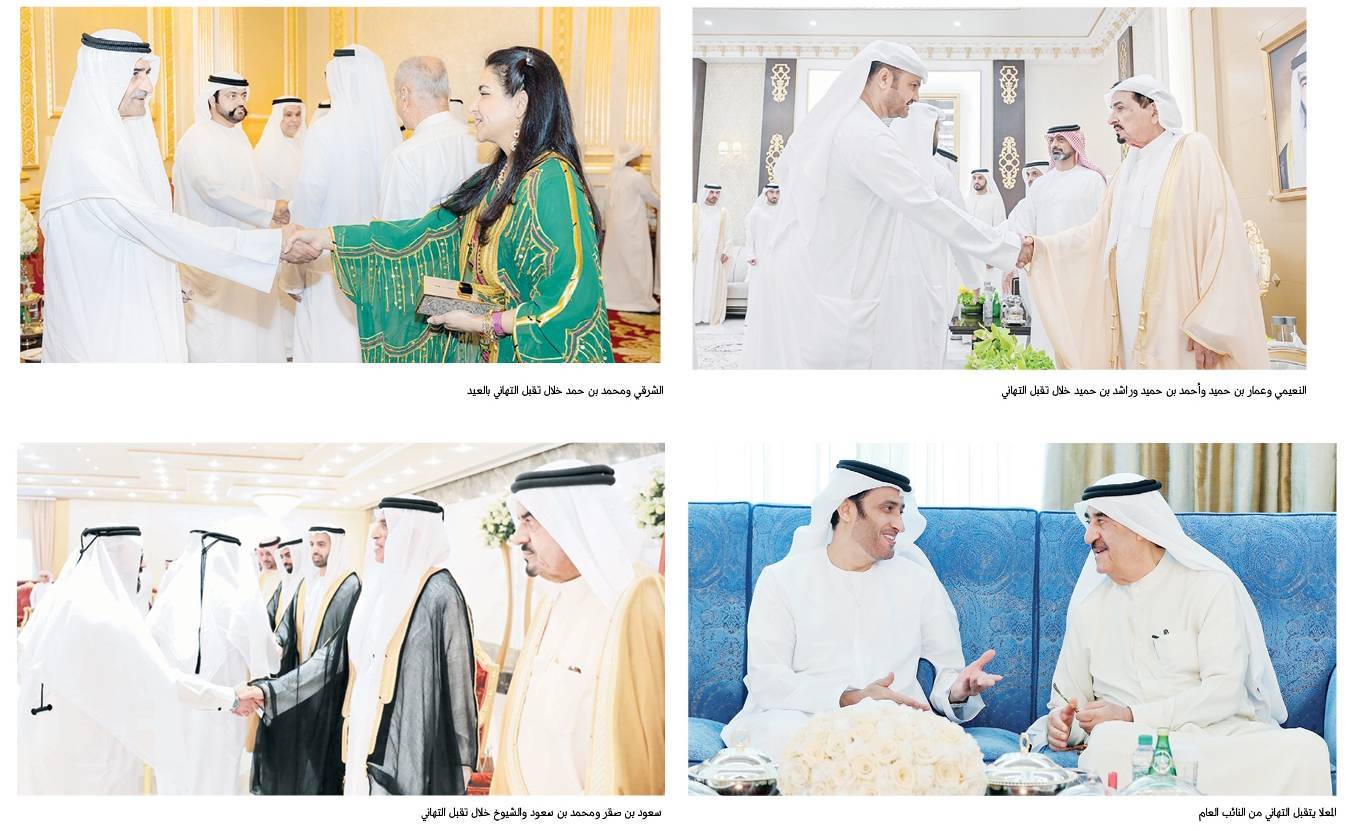 فقد تقبل صاحب السموّ حاكم عجمان، وسموّ ولي عهد عجمان، التهاني من الشيوخ وكبار المسؤولين في الدولة، ومديري الدوائر المحلية والاتحادية، ووجهاء وأعيان البلاد وأبناء القبائل والمواطنين وأبناء الجاليات العربية والإسلامية.