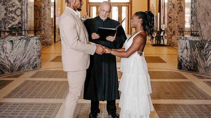 أعلنت نجمة الجمباز الأمريكية سيمون بايلز ولاعب كرة القدم الأمريكية جوناثان أوينز عن زواجهما السبت، بنشر صور يومهما المميز على مواقع التواصل الاجتماعي.