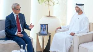 التقى الشيخ شخبوط بن نهيان آل نهيان وزير دولة، تروكون كوبوي وزير دولة بجمهورية ليبيريا، خلال الزيارة الرسمية التي يقوم بها لدولة الإمارات.