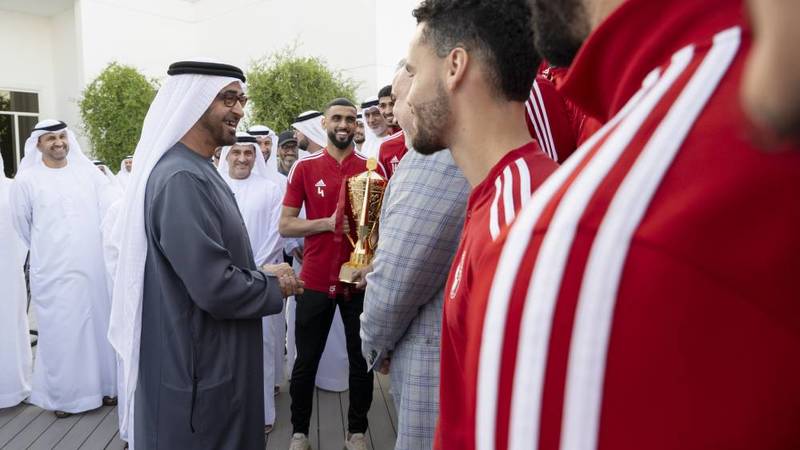 وأعرب رئيس مجلس الإدارة عن سعادته بلقاء صاحب السمو رئيس الدولة الذي يدعم جميع الرياضات والرياضيين في الدولة، مشيراً إلى أن كلمات سموه، ورسائله الإيجابية تشكل دافعاً لمجلس الإدارة واللاعبين لتقديم المزيد، وتحقيق الانتصارات والبطولات والتواجد المستمر على منصات التتويج، واعتبر المدفع أن لقاء سموه، ما هو إلا تتويج لكل عمل تم خلال الفترة الماضية، والجهود التي بذلها كل من ساهم في تتويج الفريق بطلاً لأغلى الألقاب.