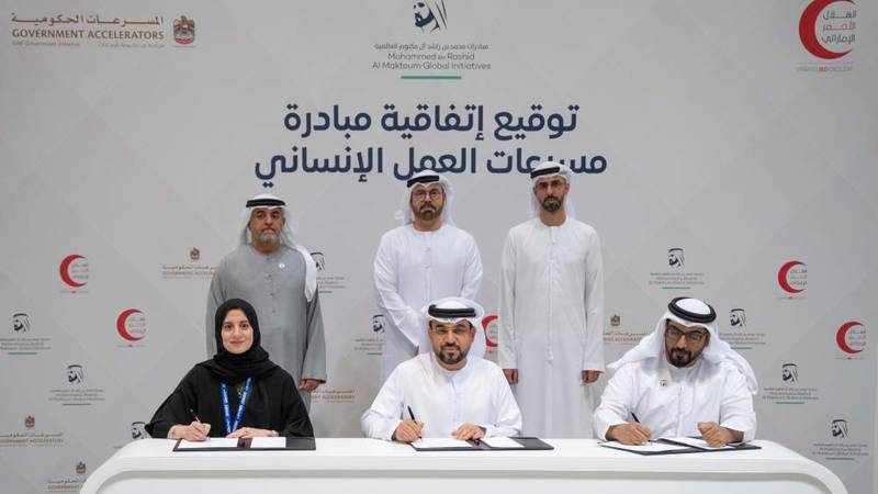 وتم توقيع المذكرة من قبل سعيد العطر، الأمين العام المساعد لمؤسسة محمد بن راشد آل مكتوم العالمية، وحمود عبدالله الجنيبي، الأمين العام المكلّف لهيئة الهلال الأحمر الإماراتي، وهدى الهاشمي، مساعد وزير شؤون مجلس الوزراء لشؤون الاستراتيجية.