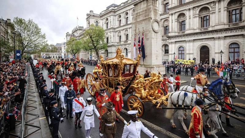 وستحيي الحشود العربة التي يعود تاريخها إلى 260 عاماً، وتجرها ثمانية خيول مع تحركها على طريق يمتد لمسافة 1.4 ميل وصولاً إلى قصر بكنغهام، في موكب يعرف باسم موكب التتويج بمشاركة نحو أربعة آلاف جندي.