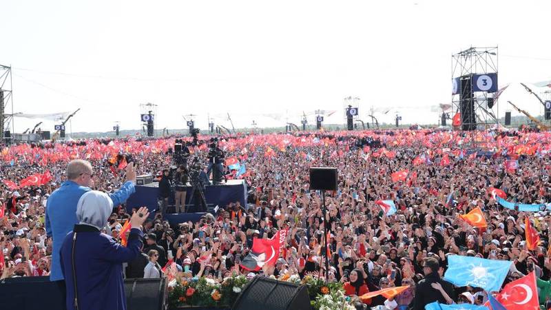 أعلن الرئيس التركي رجب طيب أردوغان، مشاركة ما لا يقل عن 1.7 مليون شخص، أمس الأحد، في تجمع انتخابي لأنصاره في مدينة إسطنبول، قبيل أسبوع من «الحسم» في الانتخابات المنتظرة الأحد المقبل، وذلك بعد يوم من تجمع لزعيم المعارضة كمال كيليتشدار الذي يعمل على تحقيق انتصار يوم الاقتراع ينهي أكثر من عقدين من حكم حزب «العدالة والتنمية».