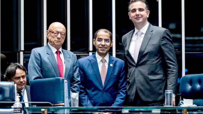 والتقى صالح السويدي، سفير دولة الإمارات لدى برازيليا على هامش الجلسة رودريغو باشيكو، رئيس مجلس الشيوخ البرازيلي، والسيناتور اسبريدياو أمين مقرر الاتفاقيتين.