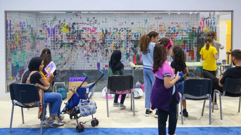 لا يخلو مهرجان الشارقة القرائي في كل دورة من إضافات مبتكرة ومتميزة وأنشطة وفعاليات متجددة، تهدف في المقام الأول إلى تعزيز قيمة المعرفة وإطلاق العنان للإبداع، وفي دورته الرابعة عشرة التي تقام في مركز إكسبو الشارقة حتى 14 مايو الجاري، تحت عنوان «عقول تتشكل»، توجد بأحد الأجنحة «غرفة التعبير» ويحوطها الزجاج الشفاف والمصممة على هيئة لوحة قماشية بيضاء في الأرضيات والجدران، لكي تمنح الصغار حرية الإبداع وخلق أعمال فنية تعبر عن أفكارهم ومشاعرهم. تستقبل «غرفة التعبير» الصغار من 5 إلى 12 سنة، ليعيش الطفل بداخل هذا الركن المختلف وقتاً يمتد من 30 إلى 40 دقيقة من دون توجيه أو الالتزام برسوم معينة، لاكتشاف ذاته بشكل عميق، والخروج من إطار الروتين اليومي الذي يفرضه الأهل والمدرسة عليه، لا يوجد معه سوى لوحة الألوان المائية والنغمات الموسيقية، ما يساعده على الاسترخاء والانطلاق بخياله واستخراج الطاقة الكامنة بداخله وأفكاره وأحاسيسه الإيجابية والسلبية في رسم تصميم ما على القماشة البيضاء باستخدام الفرشاة، أو يكتفي فقط بإلقاء الألوان بالطريقة والشكل الذي يختاره على جدران الغرفة مع الحركة على أنغام الموسيقى، وبالتالي يؤمّن له حالة من الهدوء النفسي طوال اليوم.