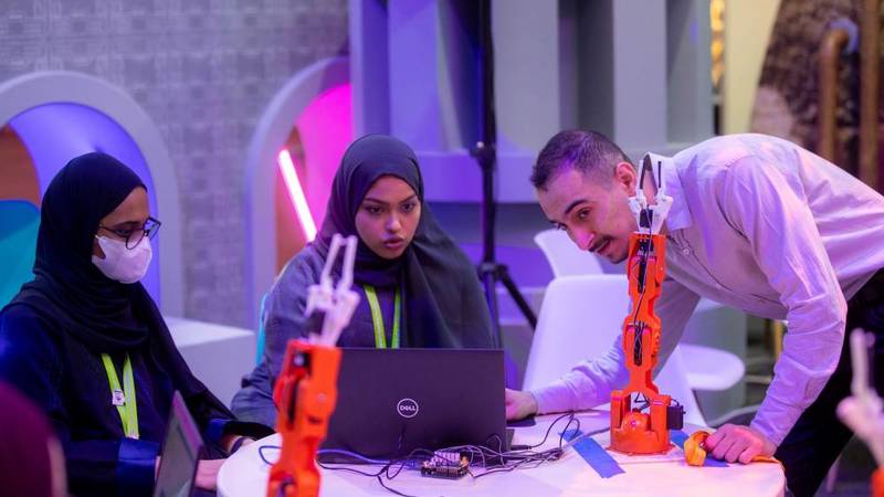 ونفّد الأطفال تعليمات المدربة، وبرمجة الأذرع على عدة مهام، كالحركة للأمام والخلف، والتقاط بعض الحلوى التي وُزعت عليهم للتأكد من نجاح برمجتهم للذراع.
