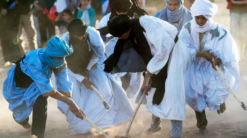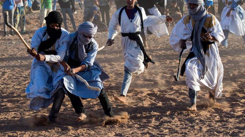 بمناسبة المهرجان الدولي للرحل الذي احتضنته البلدة مؤخراً، تجمّعت حفنة من الهواة والفضوليين حوالي ملعب صغير يحيط به العشب، في انتظار انطلاق مباراة في اللعبة. وتواجه في المباراة لاعبون من فريقين يحملون مضارب منحوتة من خشب النخيل، بأقدام حافية فوق أرضية رملية.