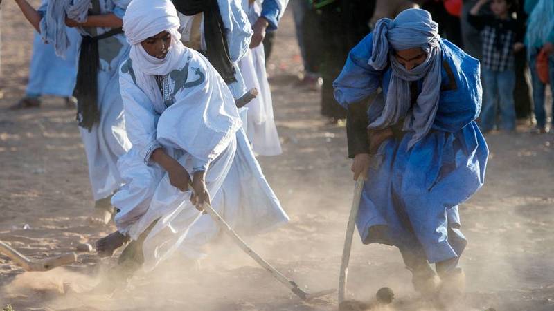 تتطلّب النسخة الصحراوية للهوكي الدقة والإتقان للتحكّم في الكرة وتمريرها وضربها، وسط الغبار المتناثر تحت وقع الأقدام الحافية للاعبين.