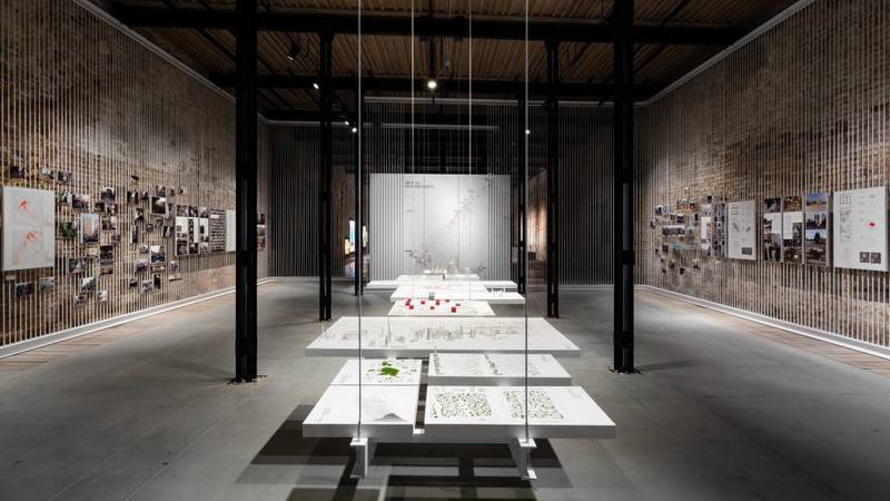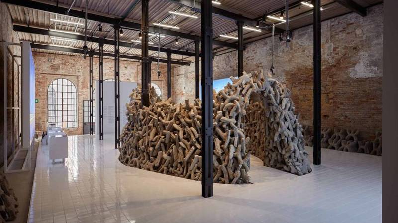 وقدم معرض «الأراضي الرطبة»، برعاية المهندسين المعماريين وائل العور وكينيتشي تيراموتو، نموذجاً أولياً واسع النطاق مستوحى من السبخات المرشحة للتراث العالمي في الإمارات العربية المتحدة «المسطحات الملحية»، والتي تم إنشاؤها من الأسمنت المبتكر والصديق للبيئة من محلول ملحي للنفايات الصناعية المعاد تدويرها، مما قد يقلل من تأثير المناخ في صناعة البناء.