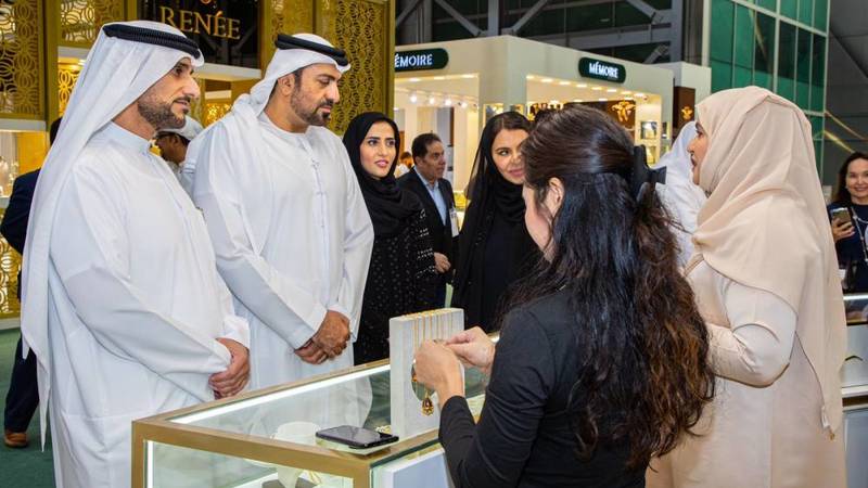 وعقب الافتتاح تجوّل الحضور في أقسام المعرض واطلعوا على أحدث التشكيلات والابتكارات في مجال المجوهرات، وآخر خطوط الموضة والتصميمات المعاصرة التي تقدمها الشركات المحلية، كما التقوا عدداً من المصممين والمصممات الإماراتيين، واستمعوا منهم إلى شرح حول أهم مشغولاتهم الذهبية وتصميماتهم الفريدة التي تتماشى مع أبرز خطوط الموضة وتحافظ على التراث الإماراتي الأصيل.