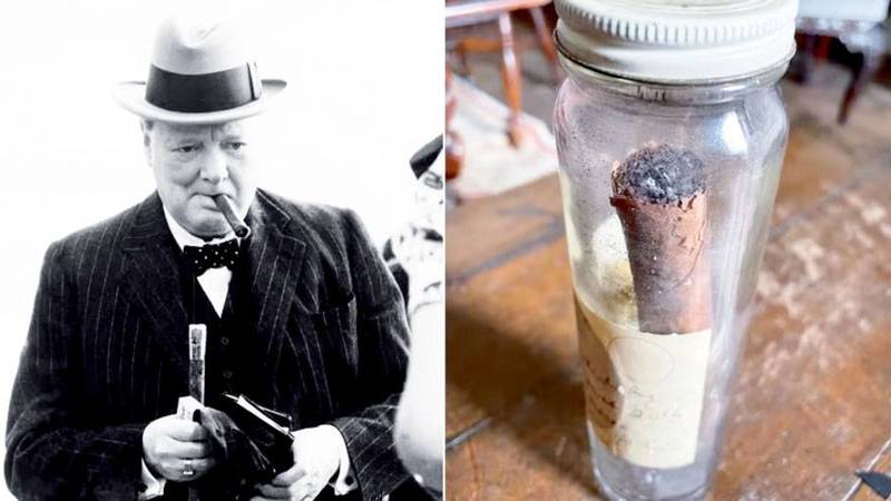يعرض سيجار دخنه رئيس الوزراء البريطاني الراحل ونستون تشرشل منذ ما يقرب من 80 عاماً، ومحفوظ في وعاء زجاجي، للبيع بمزاد في 16 يونيو /حزيران الحالي، بسعر يتراوح بين 600 جنيه و900 جنيه إسترليني.