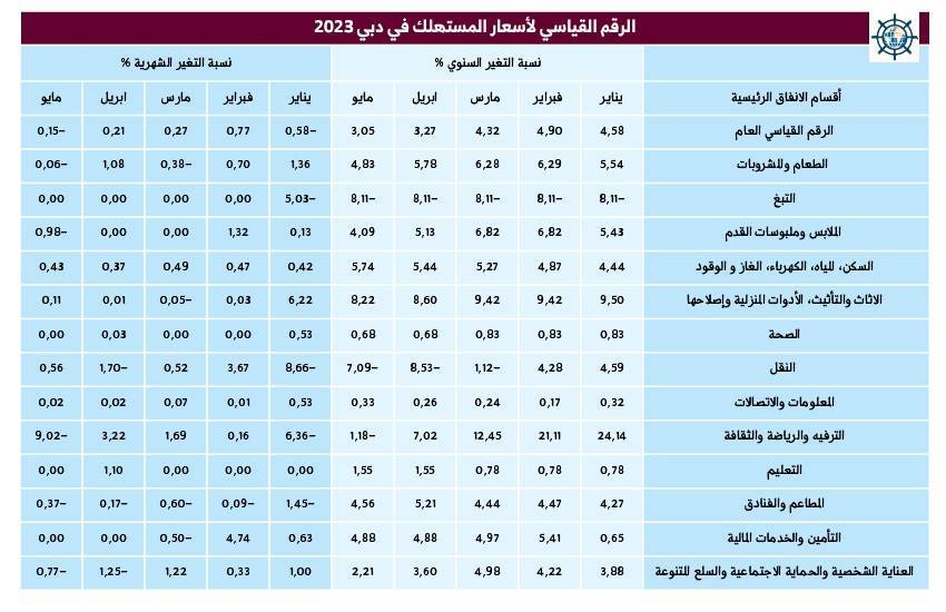 وقلص التضخم السنوي في الإمارة من فجوته للشهر الرابع على التوالي مسجلاً 3.05 في المئة، مقارنة مع إبريل/ نيسان من ذات العام والذي وصل فيه إلى 3.27 في المئة، وكذلك 4.32 في المئة خلال مارس/ آذار الماضي، و 4.90 في المئة لشهر فبراير/ شباط، و 4.58 في المئة لشهر يناير/ كانون الثاني الفائت. وبتسجيله ل3.05 في المئة لشهر مايو، يكون التضخم في دبي؛ هو الأقل له منذ 15 شهراً متتالية وتحديداً في مارس/ آذار 2022 والذي سجل فيه 3.51 في المئة.