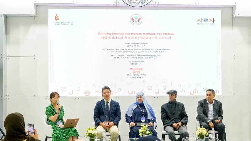 جاء ذلك في جلسة حوارية في معرض سيؤول للكتاب بعنوان «استحضار التراث الإماراتي والكوري في الكتابة» تحدث فيها كل من الكاتب والروائي سلطان العميمي، رئيس مجلس اتحاد كتاب وأدباء الإمارات، مدير أكاديمية الشعر، والدكتورة زينب الياسي، الباحثة والمحاضرة في جامعة الإمارات، والإعلامي رائد برقاوي، رئيس التحرير التنفيذي لجريدة «الخليج»، والدكتور جي هونغ، الكاتب والباحث في دراسات الشرق الأوسط.