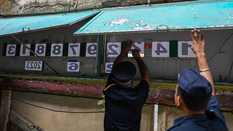 ساعة مكونة من 10 مربعات بيضاء مرقمة على لوح معدني أخضر كبير في مدينة بومباي على الساحل الغربي للهند، يتوقف أمامها المارة الفضوليون؛ لمشاهدتها وهي تسجل تاريخ أكبر دولة من حيث عدد السكان.