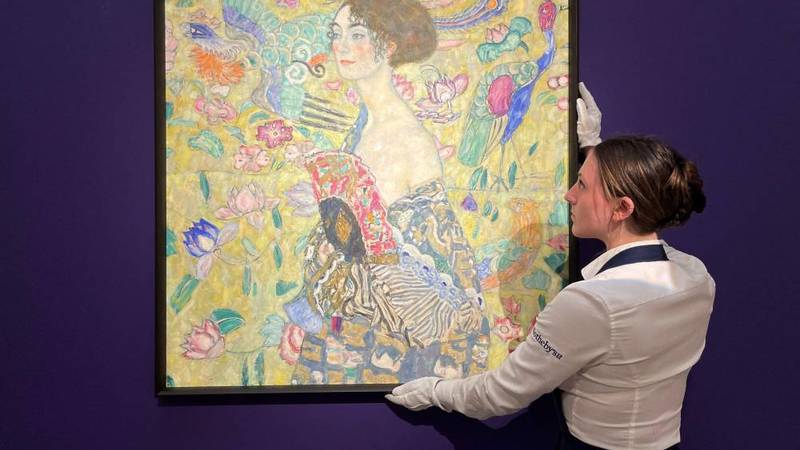 حطّمت لوحة «السيدة ذات المروحة اليدوية» للفنان النمساوي غوستاف كليمت، رقماً قياسياً في المزادات الأوروبية؛ إذ بيعت الثلاثاء، بمزاد في لندن بمقابل 74 مليون جنيه إسترليني (نحو 94 مليون دولار)، متجاوزة السعر المقدّر من دار «سوذبيز» التي نظّمت المزاد.