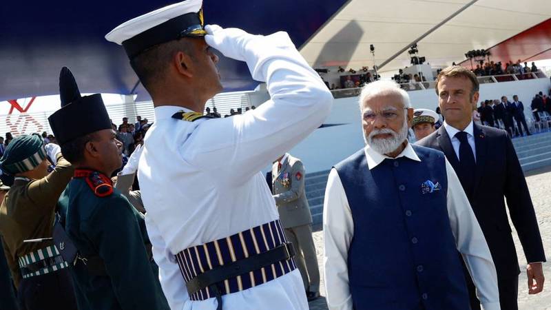 احتفلت فرنسا، أمس الجمعة، بعيدها الوطني الموافق ل 14 يوليو/ تموز، حيث كان رئيس الوزراء الهندي ناريندرا مودي ضيف الشرف بالعرض العسكري التقليدي الذي ينظم بهذه المناسبة في باريس. ومنح الرئيس الفرنسي إيمانويل ماكرون ضيفه الهندي وسام جوقة الشرف من رتبة الصليب الأكبر. وجاءت احتفالات هذا العام وسط إجراءات أمنية مشددة على خلفية أعمال الشغب التي شهدتها البلاد في نهاية يونيو، إثر مقتل الفتى نائل برصاص شرطي خلال عملية تدقيق مروري. وشملت الاحتفالات هذه السنة 6500 مشارك بينهم 5100 سيراً على الأقدام. وشارك في العرض أكثر من 60 طائرة بينها طائرات أجنبية و28 طائرة هليكوبتر و157 آلية و62 دراجة نارية برفقة 200 حصان من الحرس الجمهوري في الشانزليزيه. وافتتح العرض 240 عنصراً من القوات المسلحة الهندية، وشمل العرض الجوي ثلاث طائرات رافال هندية، كما أعلن قصر الإليزيه. وشاركت كذلك 6 كليات عسكرية إفريقية شريكة، كما شارك في العرض قدامى المعاهد العسكرية الفرنسية.(وكالات)