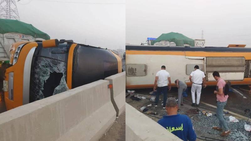 شهد طريق الكريمات الصحراوي جنوب الجيزة في مصر، حادث سير مروعاً لحافلة رحلات، أسفر عن إصابة 26 راكباً بينهم سائحة روسية.