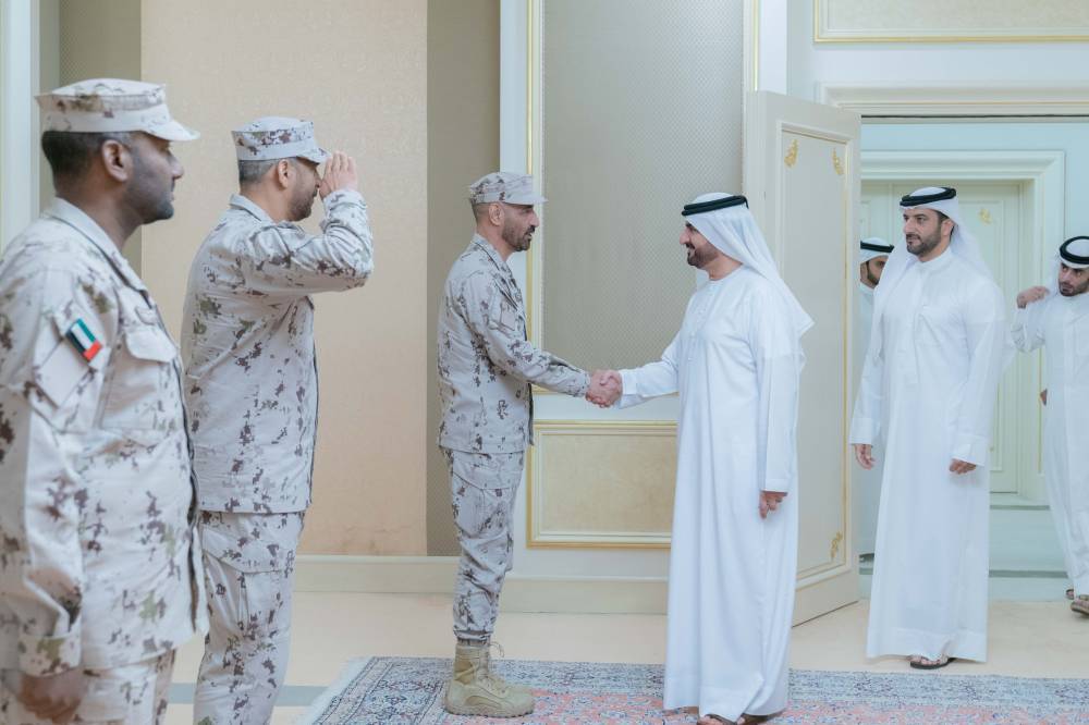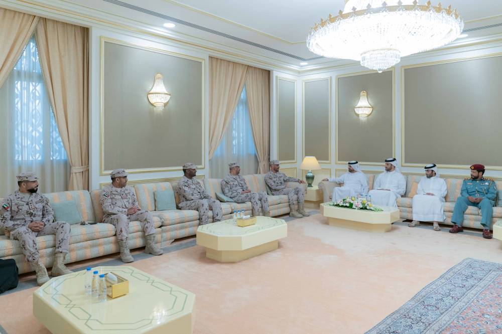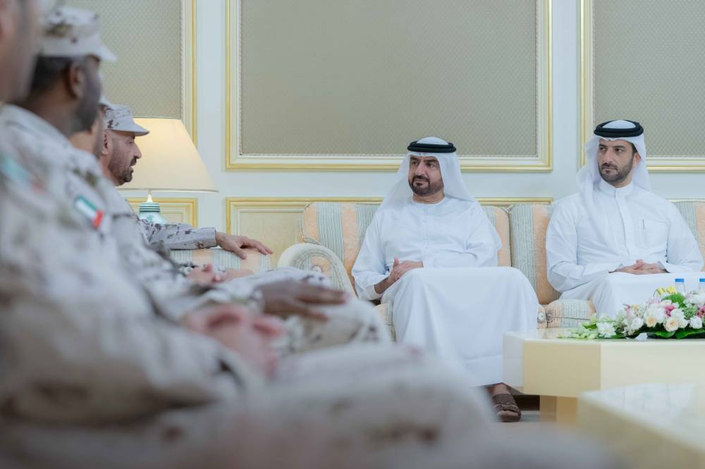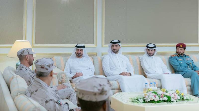 ورحب سموّه، بالوفد الذي ترأسه اللواء الركن سالم سعيد غافان الجابري، قائد الحرس الوطني، مطلعاً سموّه على أبرز المهام والواجبات والخطط الإستراتيجية المستقبلية للقيادة التي تهدف إلى رفع كفاءة العمل والارتقاء بالأداء المهني وبما يحقق الأهداف الوطنية، فضلاً عن آلية العمل العسكري والدعم الذي تقدمه القيادة للمنشآت الحيوية في الدولة.