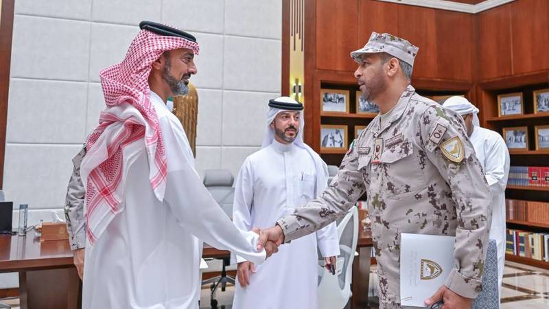 جاء ذلك خلال استقباله، الثلاثاء، بمكتبه في ديوان الحاكم، اللواء الركن سالم سعيد الجابري، قائد الحرس الوطني، والوفد المرافق له.