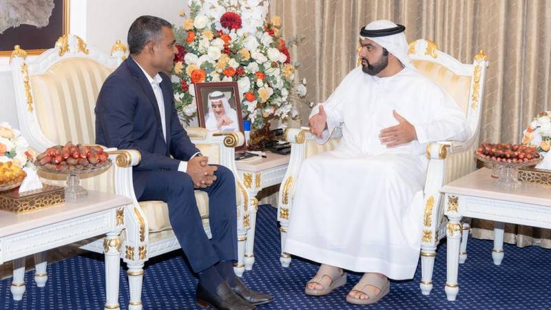 استقبل سموّ الشيخ محمد بن حمد بن محمد الشرقي، ولي عهد الفجيرة، في مكتبه بالديوان الأميري، فيصل نسيم، نائب رئيس المالديف.