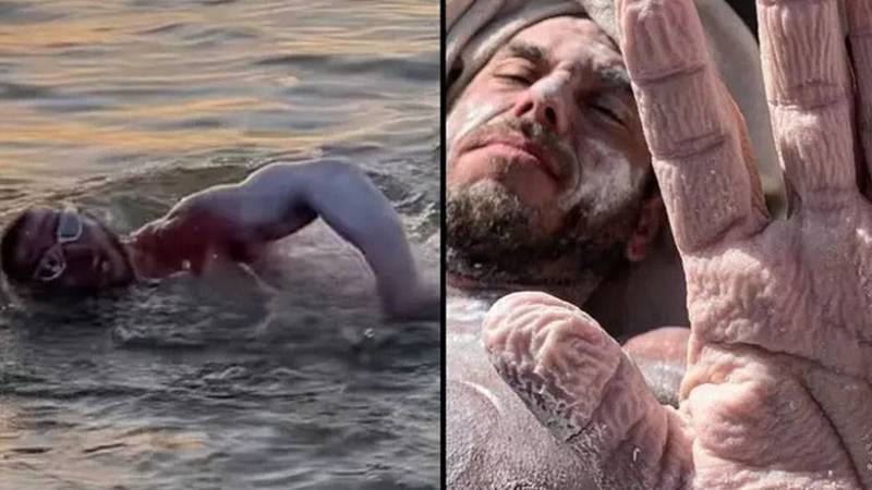 وشارك إدجلي بعض الصور لجلده المتجعد بسبب الوقت الذي قضاه في الماء على حسابه بموقع التواصل الاجتماعي معلقاً بأنه كاد يترك طعامه بسبب النظر إليها.