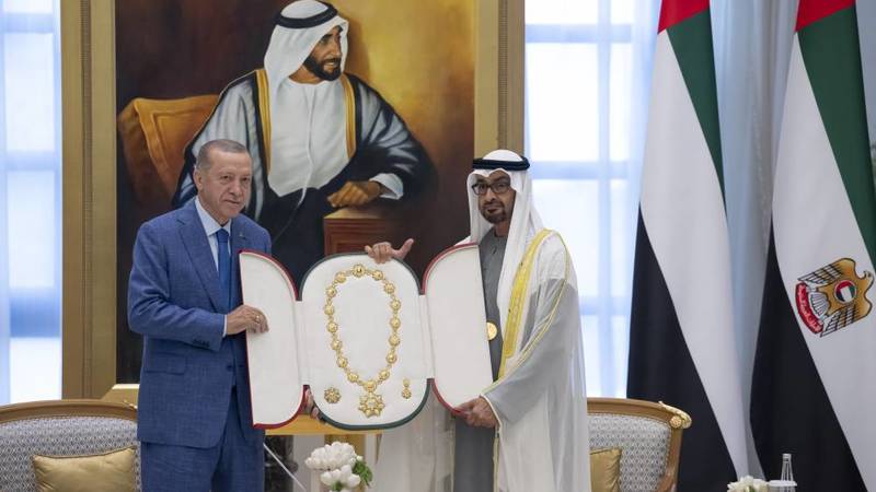 محمد بن زايد يمنح أردوغان «وسام زايد»