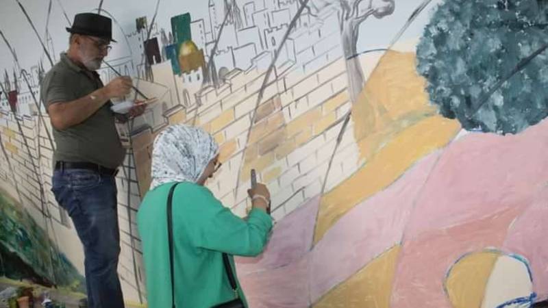 ولفت إلى تنفيذ المشاركين لوحات وتصاميم تحت شعار «القدس بعيون الفنانين» إلى جانب إنجاز جدارية بطول 10 أمتار جمعت أفكاراً تلاقت حول مفاهيم فكرية.