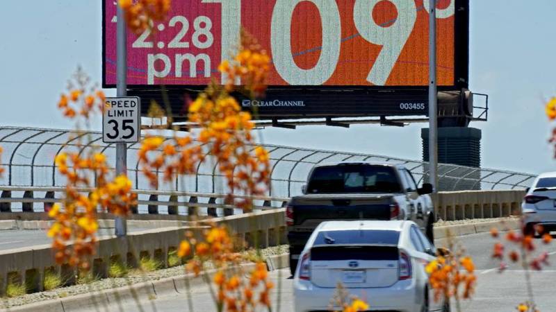 لوحة تعرض درجة حرارة 109 فهرنهايت«42 مئوية» بالمدينة (أ.ب)