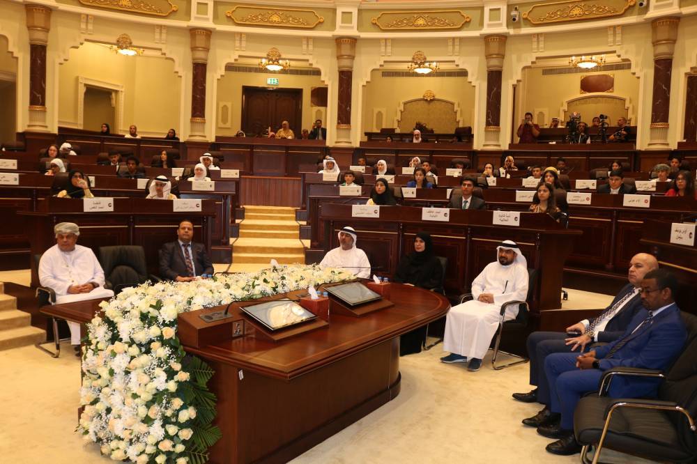 وأضاف: «نتشرف باسم البرلمان العربي للطفل بأن نتوجه بأسمى آيات التقدير والعرفان لوالدنا صاحب السمو الشيخ الدكتور سلطان بن محمد القاسمي عضو المجلس الأعلى حاكم الشارقة، الذي أسس للطفولة العربية هذا البرلمان الذي تجتمع فيه مرتين في كل عام لمناقشة الموضوعات التي تؤثر في حاضرهم وترسم أحلام غدهم ومستقبلهم».