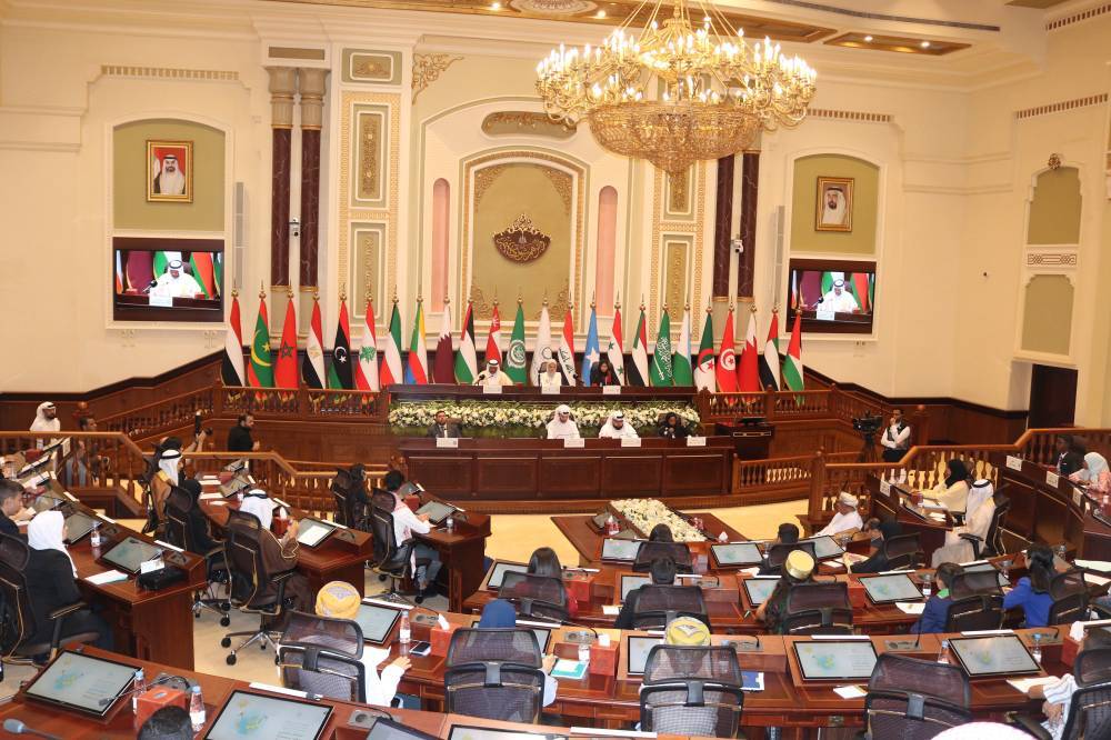 وتلت الفلسطينية حلا جهليل النائب الأول لرئيسة البرلمان العربي للطفل أسماء الأعضاء المعتذرين عن عدم حضور هذه الجلسة.