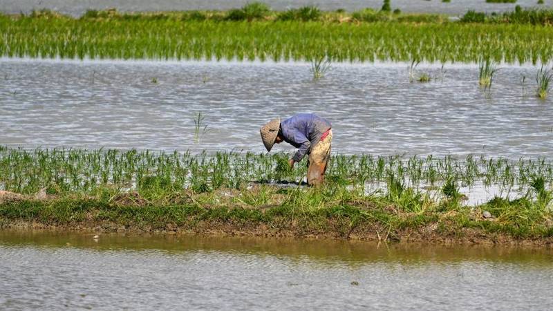 أصبحت حقول الأرز الخصبة في منطقة تمبولسلوكو، مجرد شبكة من الممرات الحجرية على سطح المياه التي اجتاحتها، في مثال على الكارثة التي قد يتسبب فيها تغير المناخ في المجتمعات الساحلية.