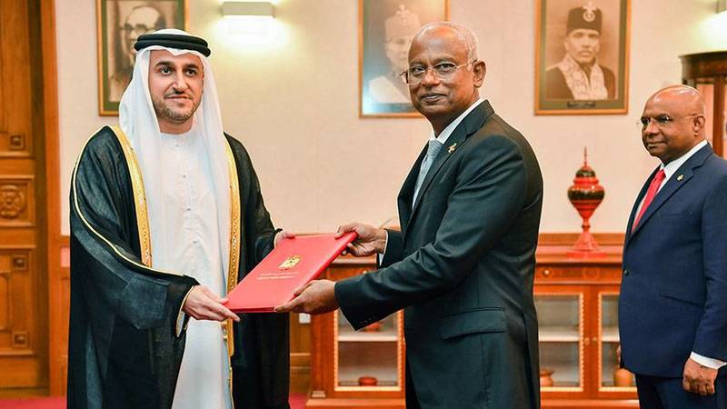 من جانبه، حمّل رئيس جمهورية المالديف السفير تحياته إلى صاحب السمو الشيخ محمد بن زايد، وصاحب السمو الشيخ محمد بن راشد، وسمو الشيخ منصور بن زايد، وتمنياته لدولة الإمارات قيادة وحكومة وشعباً المزيد من التطور والنماء، وتمنى للسفير التوفيق في مهام عمله، وتطوير العلاقات الثنائية وتعزيزها في مختلف المجالات التي تجمع البلدين، مؤكداً استعداد بلاده لتقديم كل دعم ممكن لتسهيل مهامه.