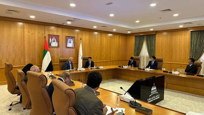 بحث الأستاذ الدكتور حميد مجول النعيمي، مدير جامعة الشارقة، ووفد أكاديمي رفيع المستوى من جامعة الصين للعلوم السياسية والقانون، برئاسة الأستاذ الدكتور تشانغ باوجو نائب رئيس الجامعة، سبل تعزيز التعاون الأكاديمي المشترك بين الجامعتين في مجال القانون والعلوم السياسية من خلال تبادل الطلبة وأعضاء الهيئة التدريسية، وتنظيم المؤتمرات العلمية والأنشطة والفعاليات.