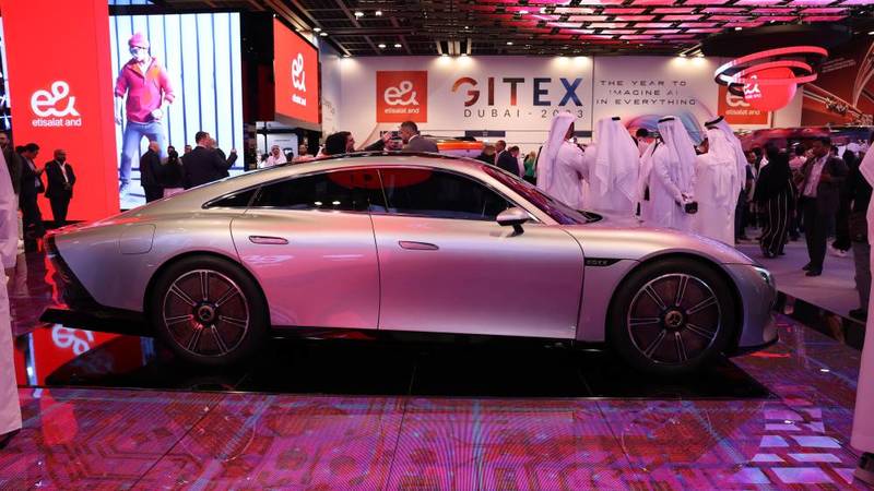 تعمل شركة مرسيدس- بنز الشرق الأوسط على عرض سيارتي ( EQXX) و(VISION One-Eleven) في معرض جيتكس، حيث تعرض الشركة السيارة النموذجية VISION EQXX، والتي تستعرض إمكانات التنقّل الكهربائي في العصر الرقمي والمستدام، بالإضافة إلى سيارة VISION One-Eleven الاختبارية، والتي تمثّل مستقبل الأداء الرياضي المعزز بالتكنولوجيا المتقدّمة والتصميم المذهل. ويتم عرض السيارات النموذجية المبتكرة في الجناح الرسمي الخاص بشركة «إي آند»، وبالشراكة مع شركة مرسيدس.