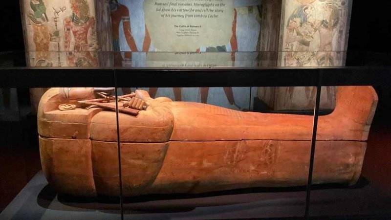 واستعرض غنيم، تاريخ الملك رمسيس الثاني ونقوشه وقصة الكشف عن تابوت الملك رمسيس الثاني في خبيئة الدير البحري، معرباً عن سعادته باستضافة المتحف لهذا المؤتمر وبمشاركته في هذا المعرض الناجح بإعارة أحد أهم القطع الأثرية المعروضة بالمتحف، وهي تابوت الملك رمسيس الثاني ما يعد إضافة عظيمة لقيمة المعرض لما لهذا الملك من شهرة عظيمة وما تركه من نقوش وتماثيل ومبان أثرية عريقة بمعابد الأقصر، والكرنك، وأبو سمبل، والرامسيوم وغيرها.
