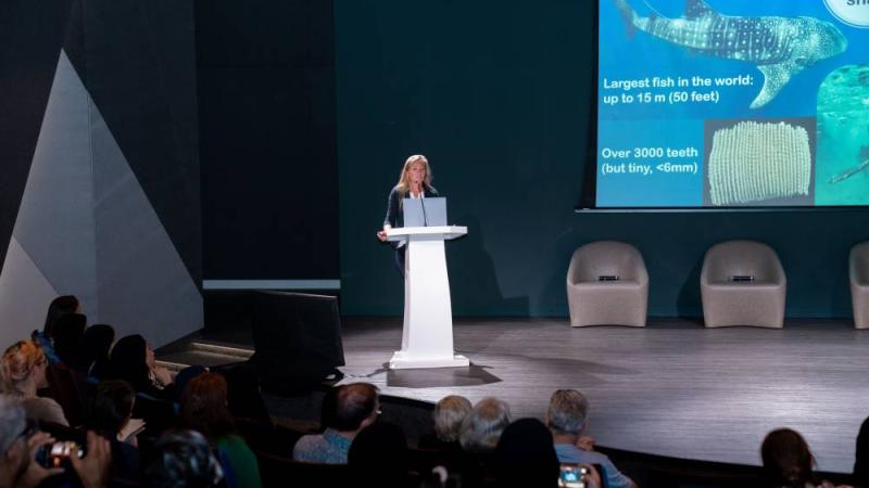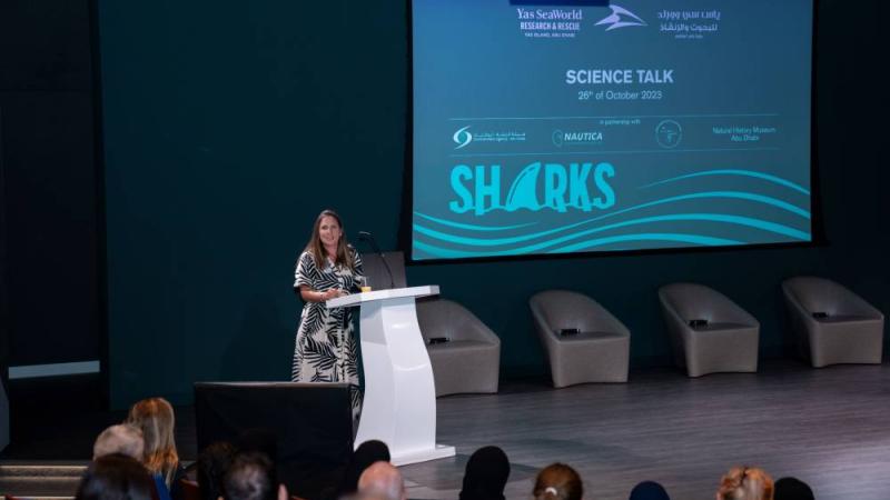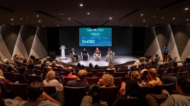 واستمع الحضور خلال هذه الجلسة إلى حوار معرفي غني لكل من د.جوليا شبيت والباحثة شمسة الهاملي، اللتين سلطتا الضوء على المنظومة البيئية لأسماك القرش والجهود المبذولة للحفاظ عليها، إلى جانب الدراسات والأبحاث المتعلقة بأسماك القرش التي تجري حالياً في سواحل أبوظبي والخليج العربي.