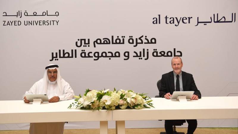 وقّعت جامعة زايد اتفاقية تعاون مع مجموعة الطاير بهدف تطوير مركز حميد مطر الطاير لموارد التكنولوجيا المساعدة، لتدريب الطلبة من أصحاب الهمم باستخدام تقنية الواقع الافتراضي (VR). جاء ذلك بحضور أحمد حميد الطاير، مدير وعضو مجلس إدارة المجموعة، الذي استقبله الدكتور مايكل ألين، مدير الجامعة بالإنابة في حرم الجامعة في إمارة دبي مؤخراً.