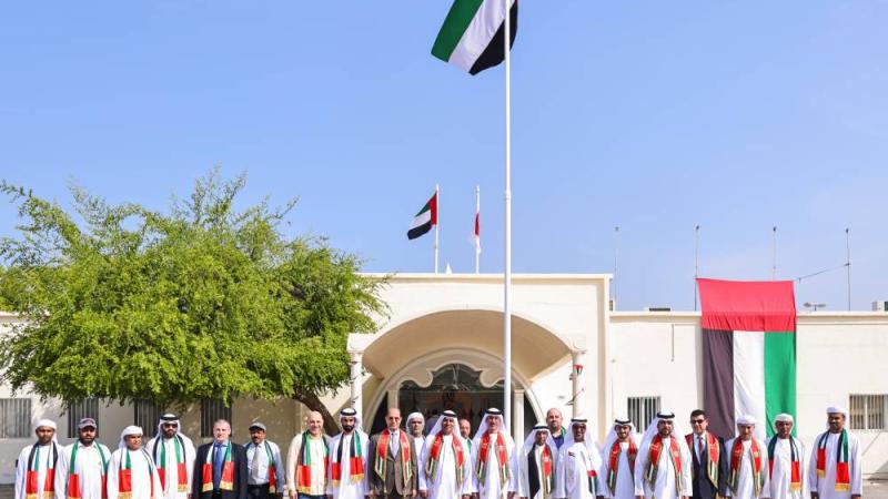 وقال أحمد يوسف النعيمي «نحتفل اليوم بمسيرة علم تم رفعه مع نشأة دولتنا الحبيبة ليكون رمزاً للحب والخير والوفاء، مشيراً إلى أن يوم العلم مناسبة وطنية سنوية غالية نحتفل لنرى فيها العلم خفاقاً في سماء إماراتنا العزيزة».