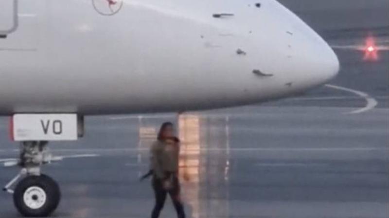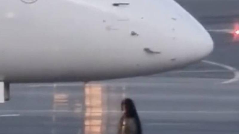 وفي اللقطات، يمكن رؤية المرأة مجهولة الهوية على المدرج، وهي تحاول إبلاغ طاقم الطائرة في الكابينة كما لو كانت تنادي سيارة أجرة.